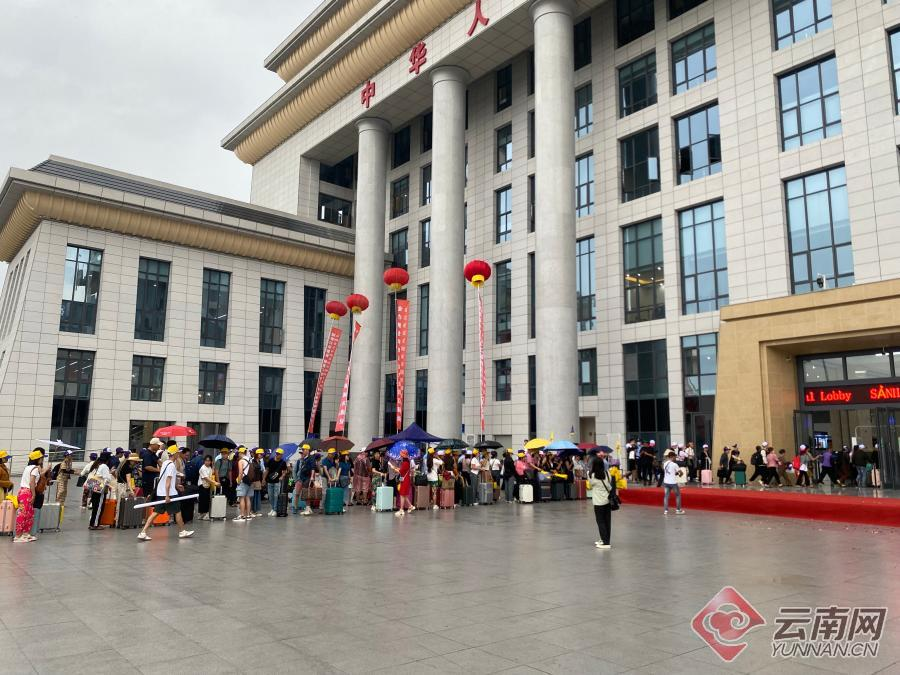 排队进入中国河口公路口岸南溪河新联检大楼的旅客(图片来源:云南网)